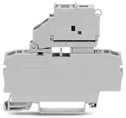 2-Leiter-Sicherungsklemme; mit schwenkbarem Sicherungshalter; und Abschlussplatte; für G-Sicherungseinsatz 5 x 20 mm; ohne Defektanzeige; für Tragschiene 35 x 15 und 35 x 7,5; 2,5 mm²; Push-in CAGE CLAMP®; 2,50 mm²; grauSicherungsklemme Serie 2002, grau