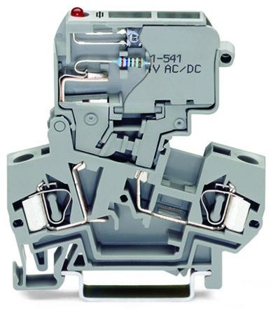 2-Leiter-Sicherungsklemme; mit schwenkbarem Sicherungshalter; für G-Sicherungseinsatz 5 x 20 mm; mit Defektanzeige durch LED; 15 - 30 V; für Tragschiene 35 x 15 und 35 x 7,5; 4 mm²; CAGE CLAMP®; grauSicherungsklemme Serie 281 mit CAGE CLAMP®