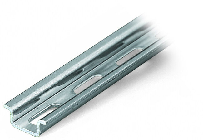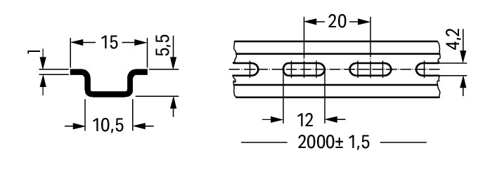 Stahltragschiene; 15 x 5,5 mm; 1 mm dick; 2 m lang; gelocht; entsprechend EN 60715; silberfarben