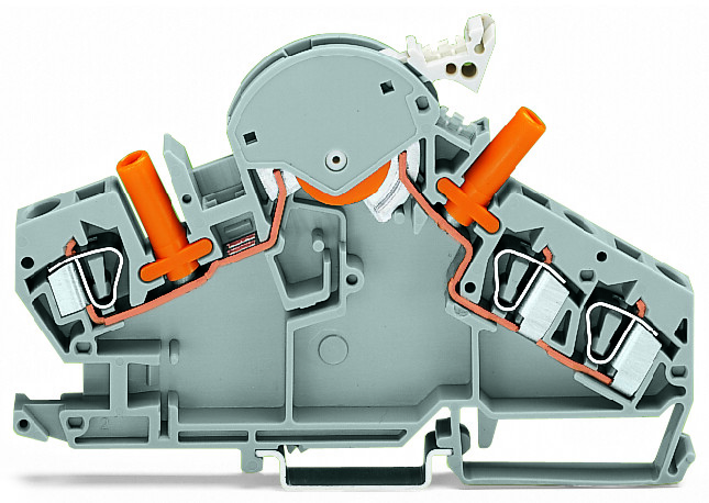 3-Leiter-Trenn- und Messklemme; z. B. für Spannungswandlerschaltungen; mit berührungssicheren Prüfbuchsen; für Prüfstecker Ø 4 mm; für Tragschiene 35 x 15 und 35 x 7,5; 6 mm²; CAGE CLAMP®; 6,00 mm²; grauSpannungswandlerklemme Serie 282, grau