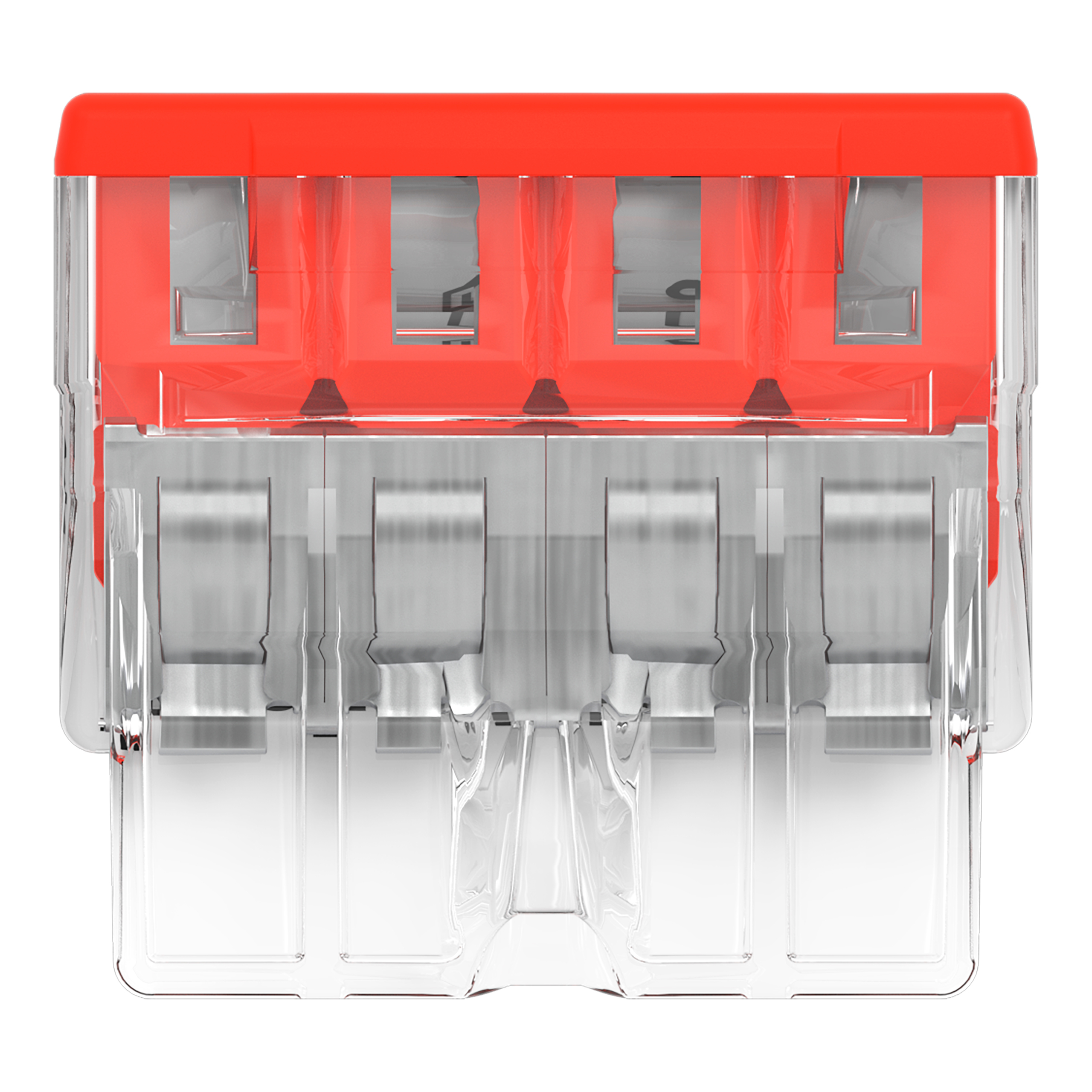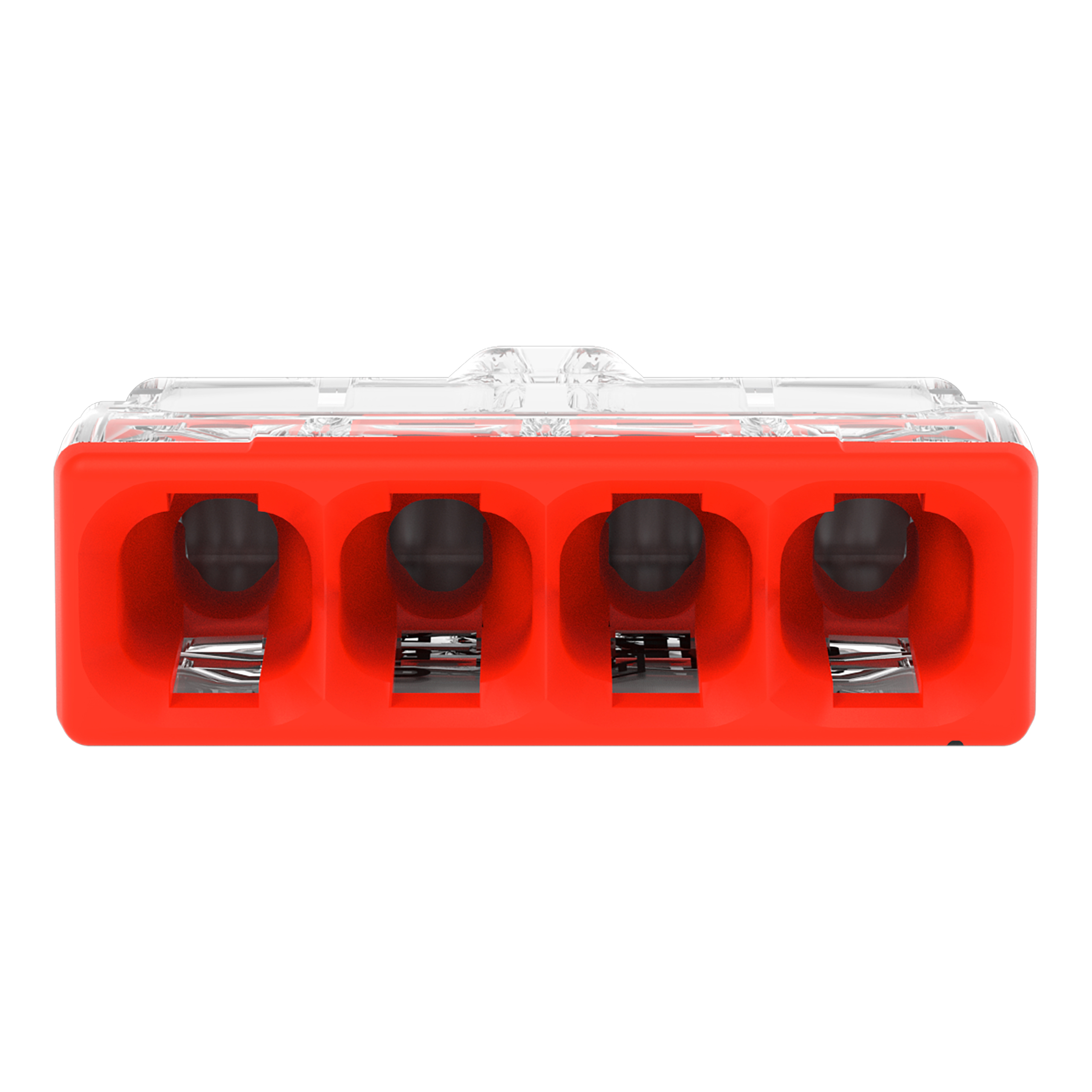 Verbindungsklemme zum Stecken; für eindrähtige Leiter; max. 2,5 mm²; 4 Leiter; Gehäusefarbe transparent; Deckelfarbe rot; Umgebungstemperatur max. 60 °C (T60); 2,50 mm²; transparent