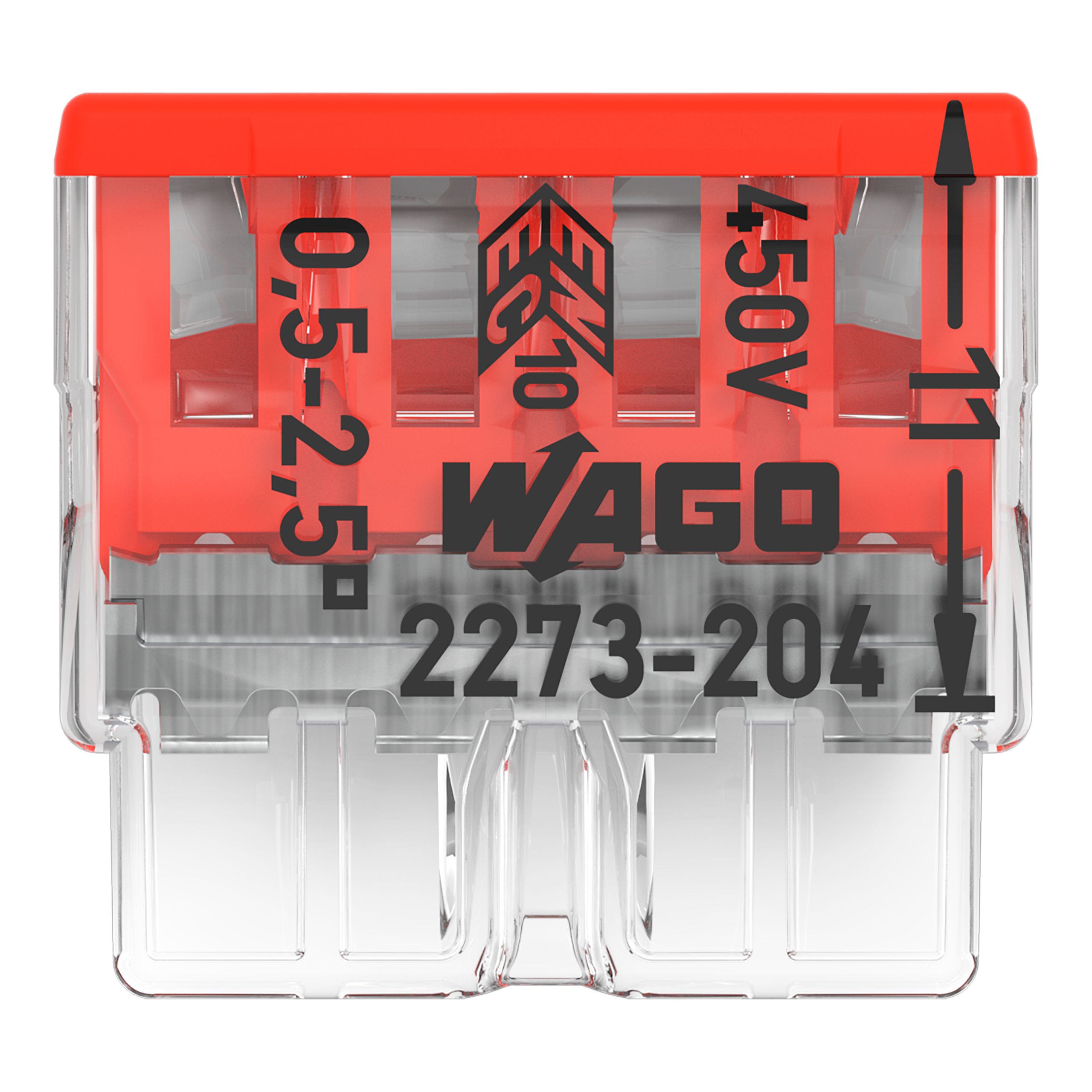 Bei dieser Verbindungsklemme zum Stecken mit der Artikelnummer 2273-204 steht eine einfache und zuverlässige Verbindung im Vordergrund. Die Verbindungsdosenklemmen der Serie 2273 ermöglichen einen sicheren und schnellen Anschluss in der Auf- und Unterputzdose in jeder Installationssituation im Gebäude. Diese Verbindungsklemme zum Stecken benötigt für den Leiteranschluss eine Abisolierung mit Längen zwischen 11 mm . Bemessungsstrom und -spannung sind wichtige Kriterien bei der Auswahl einer Verbindungsklemme: Sie geben Auskunft über die möglichen Einsatzbereiche und Anwendungen. Bei diesem Produkt beträgt die Bemessungsspannung 450 V und der Bemessungsstrom 24 A. Dieses Produkt verwendet die PUSH WIRE®-Technologie. Die schnellste Art, einen Leiter zu klemmen ist unser bewährter Steckklemmanschluss PUSH WIRE®. Diese Anschlussart nutzt die Knicksteifigkeit der Leiter, um damit die Federkraft zu überwinden. In Breite x Höhe x Tiefe sind die Abmessungen (18 x 5,8 x 16,7) mm. Diese Verbindungsklemme zum Stecken ist in Abhängigkeit von der Leiterart für Leiterquerschnitte von 0,5 mm² bis 2,5 mm² geeignet. Für die Kontaktoberfläche wurde Zinn verwendet.