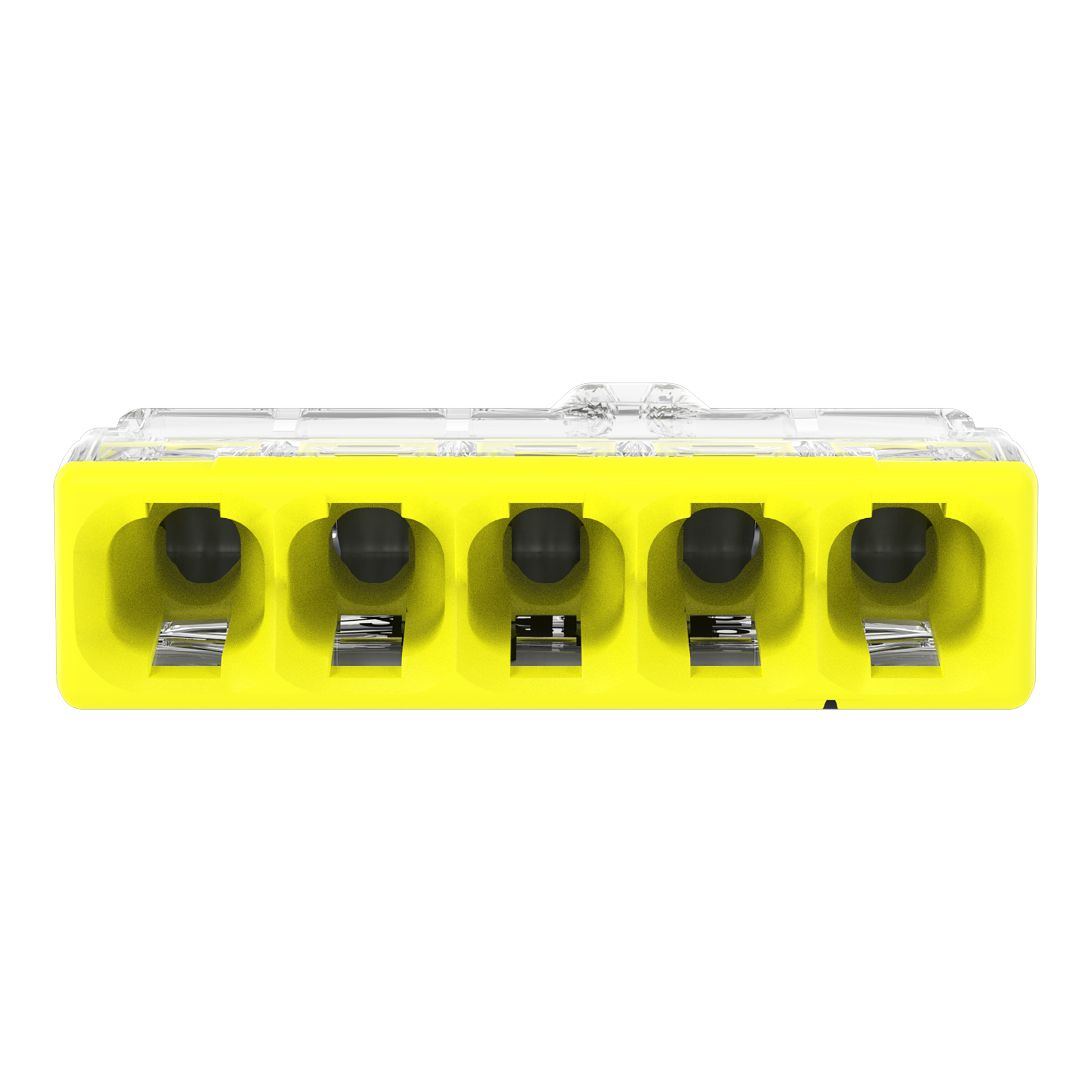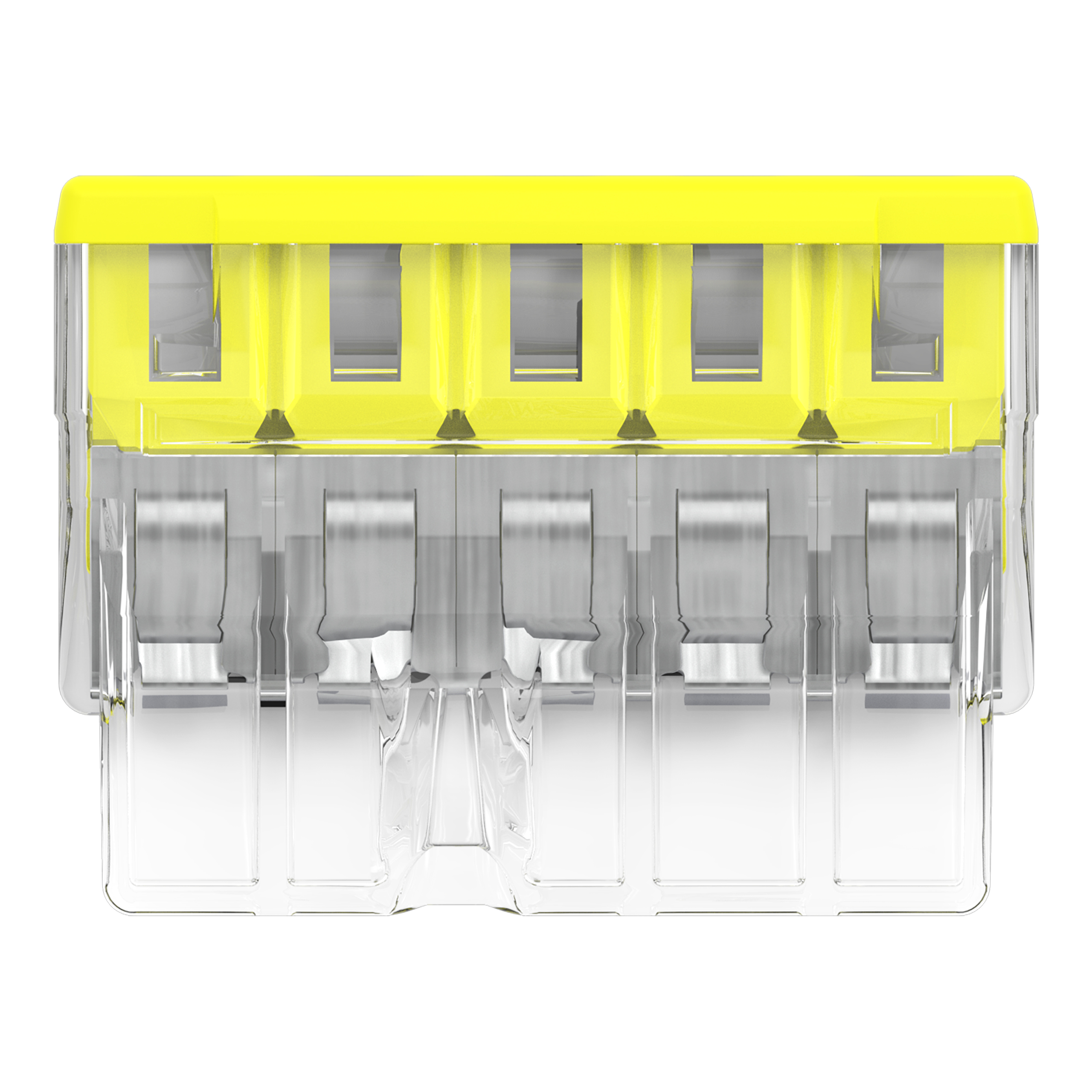 Verbindungsklemme zum Stecken; für eindrähtige Leiter; max. 2,5 mm²; 5 Leiter; Gehäusefarbe transparent; Deckelfarbe gelb; Umgebungstemperatur max. 60 °C (T60); 2,50 mm²; transparent