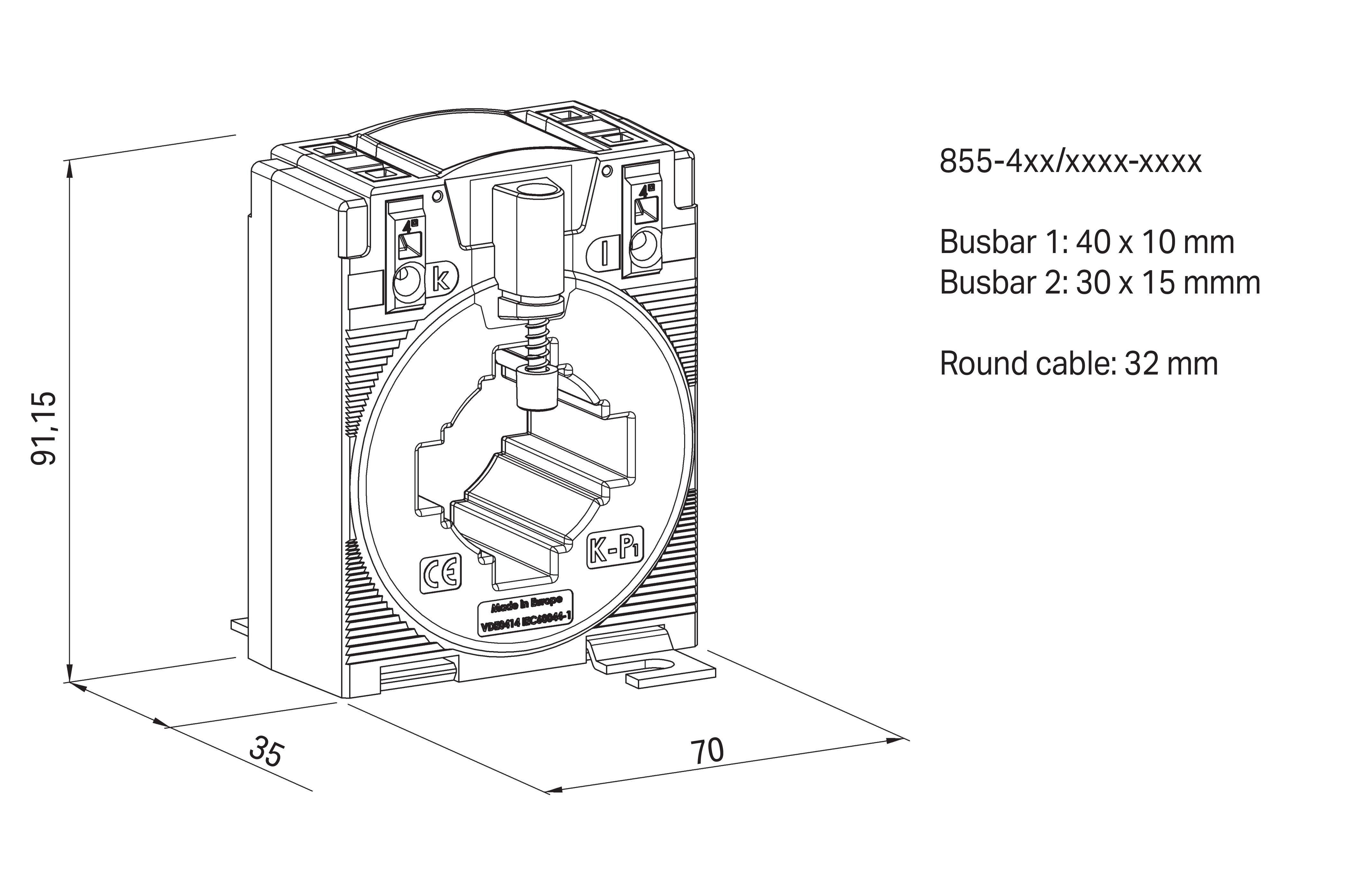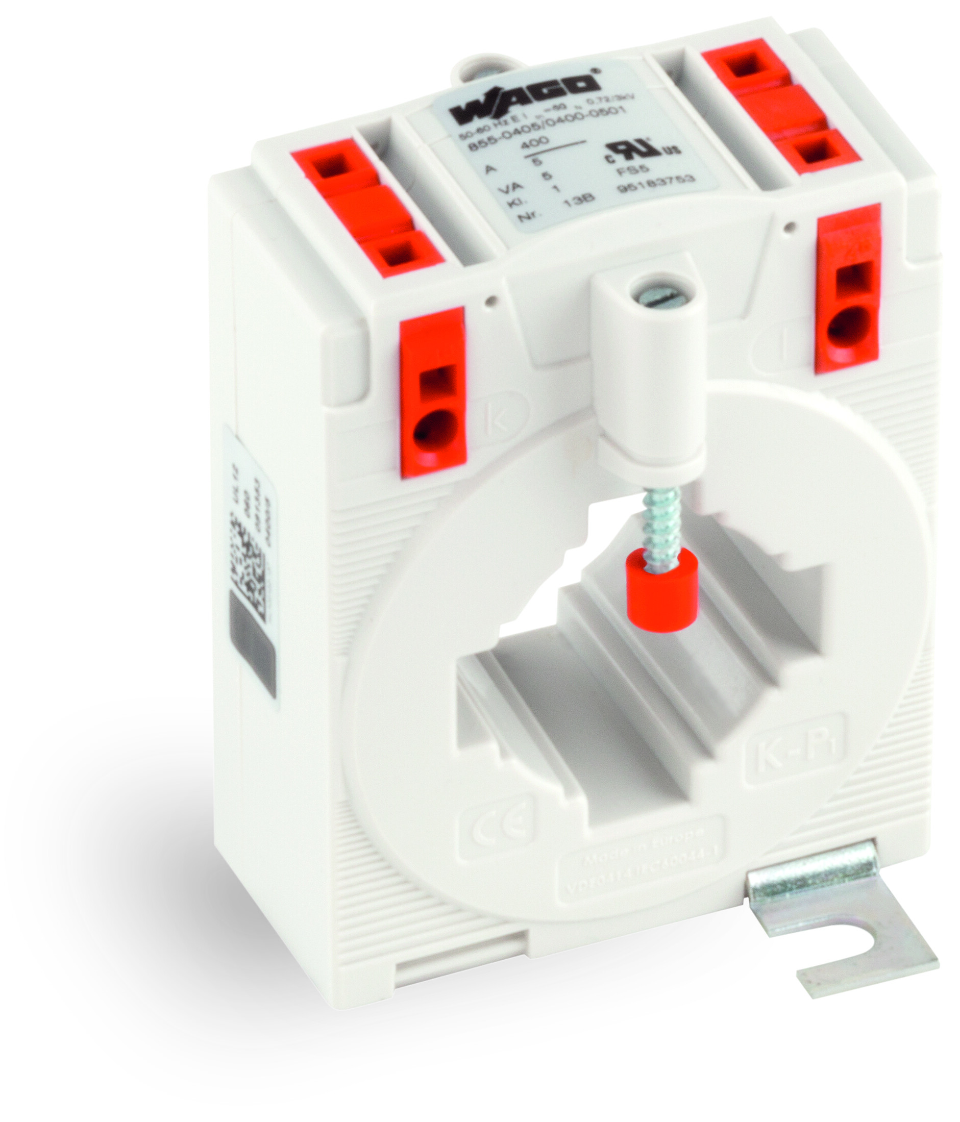 Aufsteck-Stromwandler; Primärer Bemessungsstrom 250 A; Sekundärer Bemessungsstrom 5 A; Bemessungsleistung 5 VA; Genauigkeitsklasse 1Kurzbeschreibung: Aufsteck-Stromwandler der Serie 855 sind induktive, nach dem Trafo-Prinzip arbeitende, 1-Leiter-Stromwandler. Aufgrund des angewendeten Messprinzips eignen sich Stromwandler dieses Typs zur ausschließlichen Verwendung in Wechselstromnetzen. Merkmale: Schraubenlose Anschlusstechnik mit CAGE-CLAMP®-Anschluss. Verschiedene Montagemöglichkeiten. Schockfest und rüttelsicher. Hohe mechanische Haltekräfte. Hohe Stromfestigkeit. Ständig mit 120 % des primären Nennstroms überlastbar. Niederspannungsstromwandler für Betriebsspannungen bis max. 1,2 kV. Einsatz in 690V-Netzen. UL (Recognized Components).