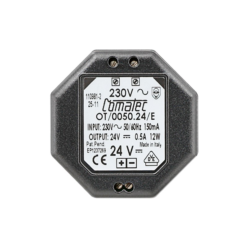 für Smart Control Art.-Nr.: SC 5 SW Eingangsspannung: AC 230 V ~, 50/60 Hz Eingangsstrom: 150 mA Ausgangsspannung: DC 24 V Ausgangsstrom: 500 mA Maße (Ø x H): 54 x 32 mm Anschluss Schraubklemmen