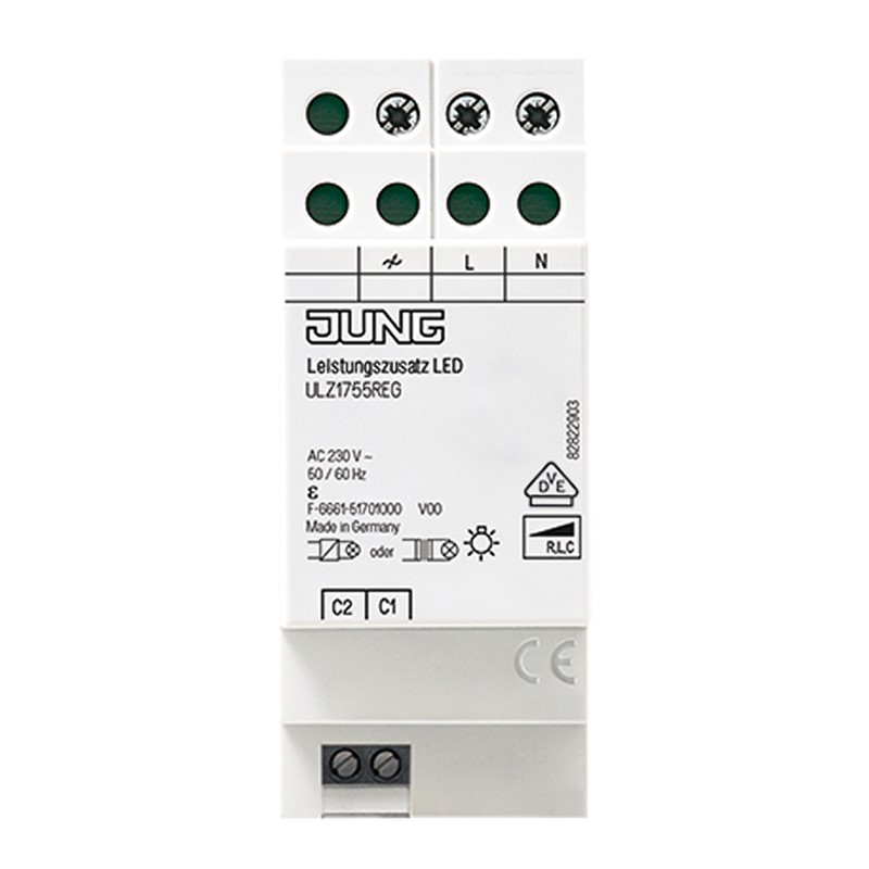 Bestimmungsgemäßer Gebrauch Leistungserweiterung von den in der Referenzliste genannten Dimmern (Art.-Nrn.: UD 1755 REG, 1730 DD, 1731 DD, 1710 DE, 1711 DE, 1712 DE, FM UD 20250 UP, FM UD 5500 REG, FM UD 420250 REG, 3901 REGHE, 3902 REGHE, 39004 1S R, 39001 1S U) Montage auf Hutschiene nach DIN EN 60715 in Unterverteiler Produkteigenschaften Anschluss mehrerer Leistungszusätze an einen Dimmer Gesamtleistung der angeschlossenen Lasten teilt sich auf Dimmer und Leistungszusätze auf Versorgung der angeschlossenen Lasten über gemeinsame Lastleitung Bedienung erfolgt über vorgeschalteten Dimmer Elektronischer Übertemperaturschutz Optionales Zubehör: Kompensationsmodul LED, Art.-Nr.: KM LED 230 U- Hersteller-Artikelnummer (MPN)
