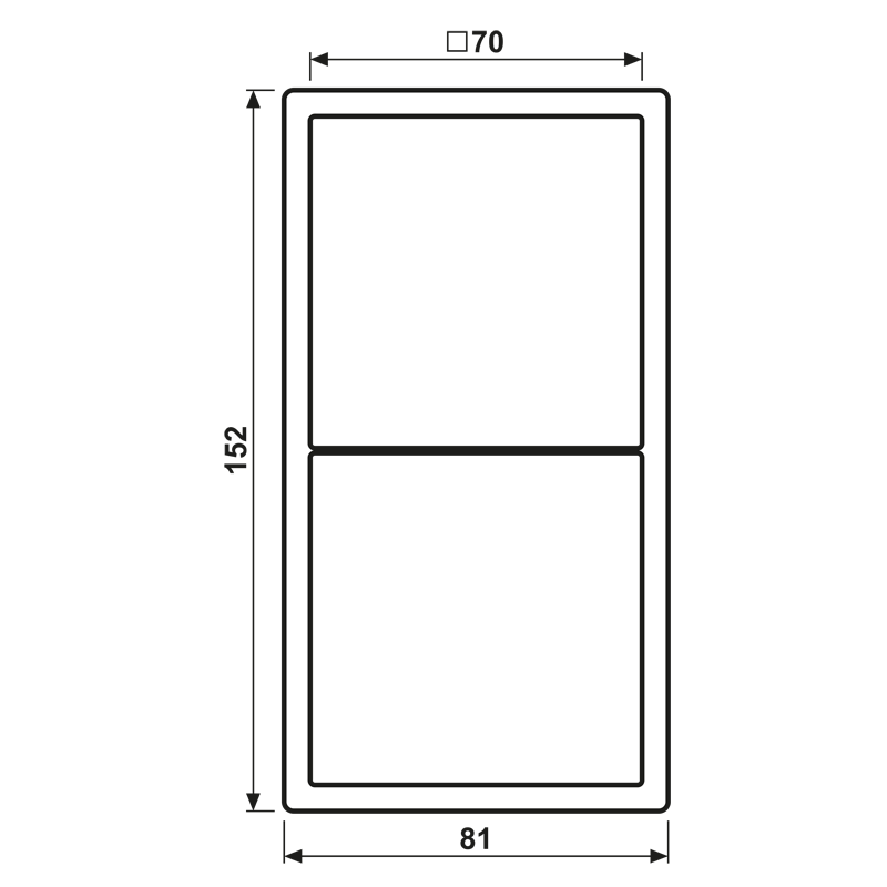 Rahmen 2fach, dark (lackiertes Aluminium) für waagerechte und senkrechte Kombination Mit Dichtungsflansch Art.-Nr.: 551 WU ist der Schutzgrad IP44 gewährleistet. Material: Aluminium lackiert Maße (B x H): 81 x 152 mm