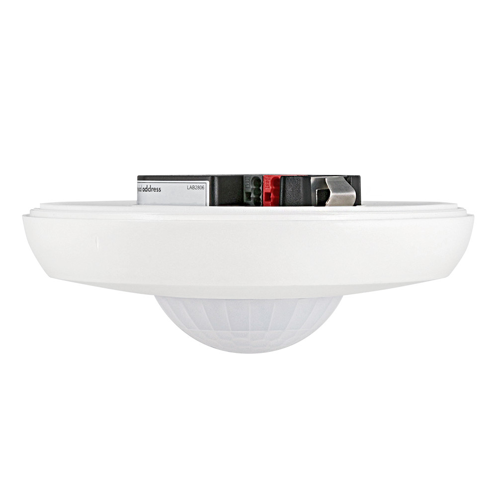 KNX-Präsenzmelder mit integriertem KNX-BUS-Ankoppler, KNX Secure fähig, HCL/RGB Steuerung, Parametrierung ab ETS 5 zur Integration in KNX-Systeme, Individuelle Empfindlichkeitsanpassung des PIR-Sensors, Mischlichtmessung mittels innen-, außenliegendem und externen (optional) Lichtsensoren, Intelligenter Halbautomatikbetrieb, präsenzunabhängiger Regelbetrieb (Dämmerungsmelder), Vollautomatikbetrieb, 1 x Licht (regel- oder schaltbar), 1x Slave-Ausgang, 3x HKL-Ausgänge (unabhängig), Regeln von bis zu drei Lichtgruppen mittels Offset (externe Beeinflussung möglich), Kurzpräsenz, Selbstanpassung der Nachlaufzeit, Korridorfunktion, Verschiedene Sperrfunktionen, Softstart, Zwei Logikmodule, Aufruf von Lichtszenen, Abschaltbare Zustandsanzeigen, Temperatur- und Geräuschsensor
