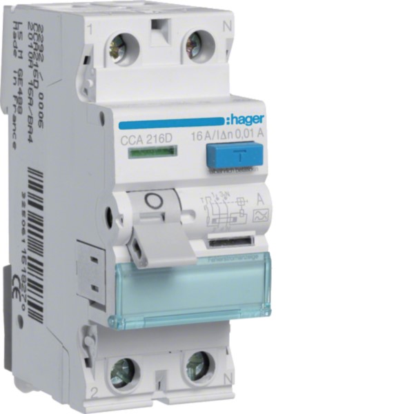 FI-Schutzschalter 2pol. 16A/10mA,6kA CCA216D