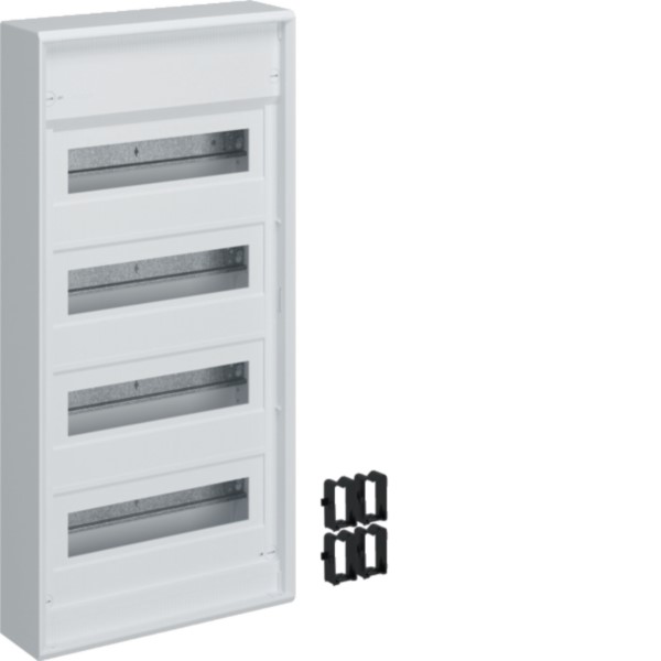 Erleben Sie den leistungsfähigen und sicheren VA48CN Aufputz-Kleinverteiler volta aus Kunststoff ohne Tür mit 4x12 PLE und Schutzart IP30. Geeignet für die Installation in Wohngebäuden nach DIN 18015 bietet er Platz für bis zu 48 Module. Mit den vormontierten Montageplatten und dem mitgelieferten Befestigungsmaterial ist die Montage denkbar einfach. Der AP-Kleinverteiler volta kann bei Bedarf mit einer gesondert erhältlichen Stahlblechtür ergänzt werden.