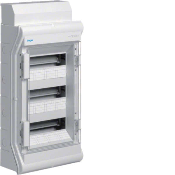 Erfahren Sie mehr über den AP-Kunststoff-Kleinverteiler vector VE312DN mit durchsichtiger Tür. Gemäß DIN EN 60670-24 und DIN 43871 und mit IP65 ausgestattet, bietet er mit 36 PLE und Rangierkanal Steckplätze für bis zu 36 Baugruppen. Die Tragschienen und das Befestigungsmaterial erleichtern die Montage. Es sind auch zusätzliche Zubehörteile für eine einfache Installation und Wartung erhältlich. Verlassen Sie sich auf die bewährte Hager-Qualität.- Hersteller-Artikelnummer (MPN)