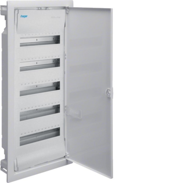 Entdecken Sie den Volta Unterputz-Kleinverteiler VU60NC aus Kunststoff mit Tür von Hager. Mit 5 Reihen und 12 PLE bietet er Platz und Flexibilität für Ihre Elektroinstallation. Mit Schutzart IP 30 und zertifiziert nach DIN VDE 60670-24 und DIN 43871 ist der VU60NC für die Installation in Wohngebäuden nach DIN 18015 geeignet. Mit dem Wandkasten mit Leitungsabfang und ausbrechbarem Leitungseinführungsschieber bietet der VU60NC Kleinverteiler Top-Leistung in Hager-Qualität.
