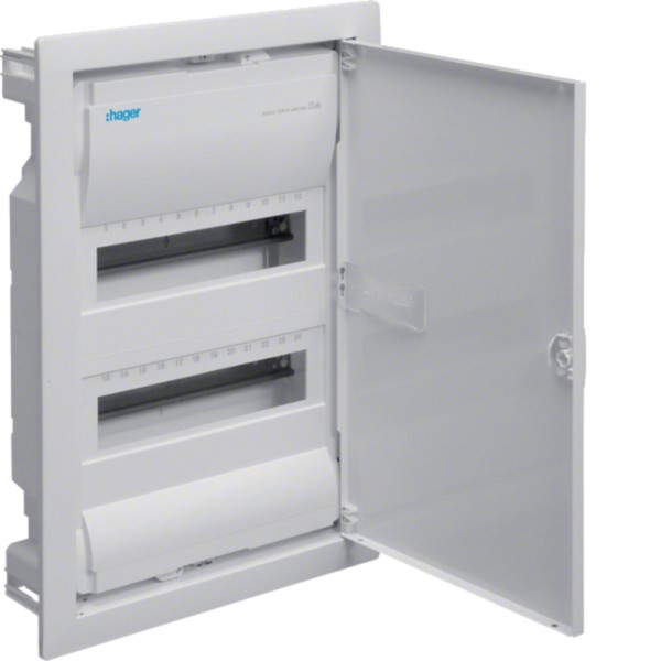 Entdecken Sie den UP-Kleinverteiler volta VU24NC mit 2x12 PLE, Schutzart IP30 und Stahlblechtür für die Unterputzmontage, geprüft nach DIN VDE 60670-24 und DIN 43871 und für den Einsatz in Innenräumen nach DIN 18015 zugelassen. Der Kunststoff-Mauerkasten ist mit Leitungsabfang, ausbrechbarem Leitungseinführungsschieber und Befestigungslaschen aus verzinktem Stahlblech ausgestattet. Stahlblech-Geräteträger für die Montage einzeln isolierter Hutschienen. Auf ist Verlass!