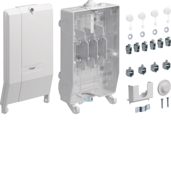 Hausanschlusskasten der Baureihe K3, Modell KH00, ausgestattet mit einem Polyesterdeckel und 1x3NH00-Sicherungseinsätzen. Ideal für die robuste und sichere Verteilung elektrischer Energie. Bietet Schutz durch hochresistentes Material, gewährleistet dauerhafte Stabilität und einfache Zugänglichkeit für Wartungsarbeiten.