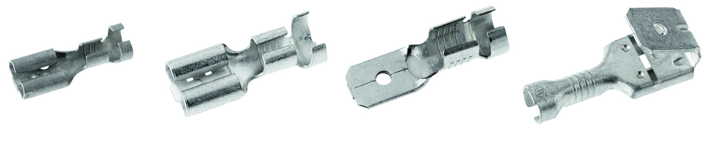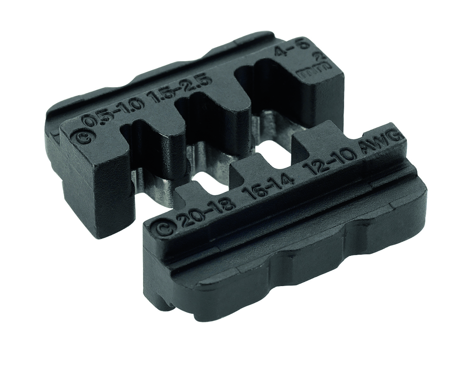 Click n Crimp-Pressprofileinsätze, Click n Crimp kann den eigenen Anforderungen des Anwenders entsprechend individuell zusammengestellt werden: Pressprofileinsätze für nicht isolierte Flachstecker und Flachsteckhülsen mit offenen Crimpkrallen von 0,5 mm² bis 6 mm² bzw. AWG 22 bis AWG 10, Rollpressung (C), 1 Paar
