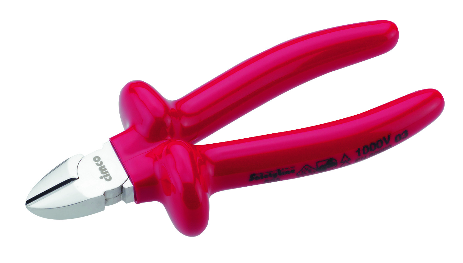 Tauchisolierte Sicherheitszange, VDE-Geprüft - Griffe mit zweifarbiger Kunststoff-Tauchisolation für optimale Sicherheit. Bei Beschädigung der äußeren roten Isolationsschicht signalisiert die nun sichtbare untere orangefarbene Kunststoffisolation, dass nicht mehr eine 100-prozentige Sicherheit gemäß den Sicherheitsnormen gegeben ist. 1.000 V Seitenschneider nach DIN ISO 5749B, eingelegte Gelenk mit induktiv gehärteter Präzisionsschneide (ca. 64 HRC), für alle Drähte, auch für Pianodraht, aus Elektrostahl. Länge 180mm