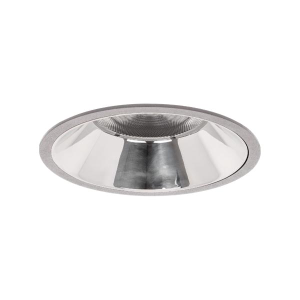 LED-Einbaudownlight, schaltbar, Reflektor silber, hochglänzend, struktursilber, rund. Ausgeführt in kompakter Bauform für werkzeuglose Schnellmontage zum Deckeneinbau. Ausführung: ohne Fassung, Montageart: Einbaumontage, Montageort: Deckenmontage, Material: Aluminium / Glas / Kunststoff, Schutzart raumseitig: nach DIN EN 60529: IP20, Schutzklasse: (EN 61140) II, Spannung: 230V AC 50Hz, Leistung: 20,5 W, Anzahl der Leuchtmittel / Fassungen: 1 Stück, Lichtstrom: 2.655 lm, Farbtemperatur: 3.500 K, Lichtfarbe: weiß, Abstrahlwinkel: 55°, Verstellbarkeit: nicht verstellbar, Mit Betriebsgerät: Ja, Art der Dimmung: schaltbar.