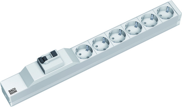 19Zoll Steckdosenleiste 6f Schutzk.1HE,1xFI,alu 333.411