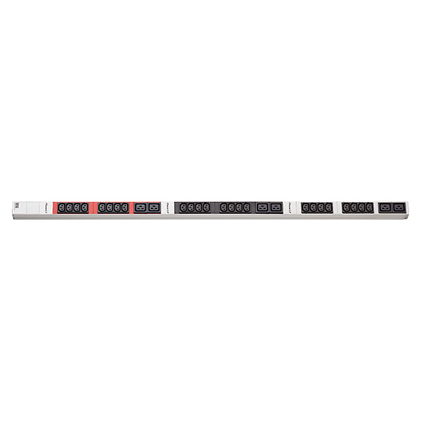 ALU 1HE VM Steckdosenleiste 24xC13 Kaltgerätedosen, 6xC19 Kaltgerätedosen aufgeteilt auf 3 Phasen pro Phase 8xC13 2xC19 Phasen farblich markiert Zuleitung: 3,0m H05VV-F 5G2,5mm² mit CEE Stecker 3-phasig 16A, inkl. Haltewinkel, mit BACHMANN Logo verpackt im Karton,