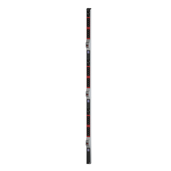 BN0500 ALU 1HE VM Steckdosenleiste mit integrierter Leistungsmessung, 6x LS C16A 1pol. 24xC13 0° Kaltgerätedosen 6xSchutzkontaktsteckdosen 35° Zuleitung: 3,0m H05VV-F 5G 4mm² schwarz mit CEE 32A Stecker mit Haltewinkel 1HE, mit BACHMANN Logo verpackt im Karton.