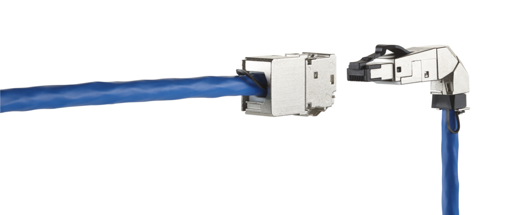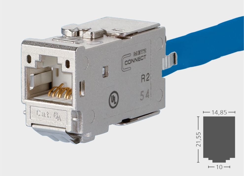 Modulare Cat.6, A Anschlusseinheit RJ45Einbauform: MC Modul, Kabelzuführung 180°, robustes, einteiliges und wieder verwendbares Modulgehäuse aus Zinkdruckguss, veredelt, Montage ohne Spezialwerkzeug, Zugentlastung per Rastclip direkt am Ladestück, Spezialwerkzeug-freie Migration auf 25G-Systeme, montagefreundlicher Anschluss von Datenleitungen AWG 26/1 - 22/1 (eindrähtig) und AWG 26/7 bis 22/7 (mehrdrähtig) an IDC-Schneidklemmen, intelligentes Kabelmanagement im Ladestück, auch für stark verdrillte Leitungen geeignet, Kennzeichnung der Adernbelegung T568A und T568B direkt auf dem Ladestück , für 10BaseT, 100BaseT, ATM 155 MBit/s, Gigabit-Ethernet,10GBASE-T, Potentialausgleich mittels Federkontakt zur Applikation, zusätzlicher Anschluss für Potentialausgleich mit Flachstecker 2,8 mm , GHMT Cat.6, A re-embedded PVP zertifiziertCat.6, A Komponentenprüfung nach ISO/IEC 11801, DIN EN 50173-1, ANSI/TIA-568.2-D und IEC 60603-7-51, GHMT zertifiziertEinhaltung der Klasse E, A bis 500 MHz nach ISO/IEC 11801, DIN EN 50173-1getestet: Komponente bis 600 MHz, Link bis 800 MHz