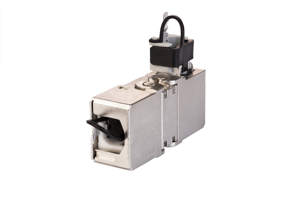 Feldkonfektionierbarer Kabelverbinder Klasse E, A für 8-adrige Kabel (optional auch für 4-adrige Kabel)Kabelabgang gewinkelt 90° und 270°, für die Verbindung/Verlängerung/Reparatur/Umverlegung von Cu-Datenkabeln bis Cat.7, Ain Verbindung mit Cat. 6, A oder höheren Cu-Kabeln wird die Klasse EA bis 500 MHz nach ISO/IEC 11801, DIN EN 50173 erfülltfür 10GBit Ethernet (IEEE 802.3an), Remote Powering (PoE, PoE plus, UPoE und 4PPoE), HDBaseT, SAT-IP und AVoverIP geeignet, kompakte Bauform, Länge 46,6 mm x Breite 14,7 mm x Höhe 31,8 mm, robustes, einteiliges und wieder verwendbares Gehäuse aus Zinkdruckguss, veredelt, einfachste Konfektion - Montage ohne Spezialwerkzeug, Zugentlastung per Rastclip direkt am Ladestück, intelligentes Kabelmanagement im Ladestück, auch für stark verdrillte Leitungen geeignet, Schirmanschluss und Zugentlastung, Kennzeichnung der Adernbelegung T568A und T568B direkt auf dem Ladestück, Einfache Verlängerung oder Umverlegung bestehender Infrastruktur C6, A modul durch wieder- bzw. weiterverwendbare Ladestückemontagefreundlicher Anschluss von Datenleitungen AWG 26/1 bis 22/1 (eindrähtig) und AWG 26/7 bis 22/7 (mehrdrähtig) an IDC Schneidklemmen, Leiterdurchmesser Volldraht 0,409 bis 0,643 mm, Leiterdurchmesser Litze 0,483 bis 0,762 mm, geeignet für Kabelmanteldurchmesser von 5,5 bis 10 mm, vollgeschirmte Ausführung entsprechend DIN EN 50173