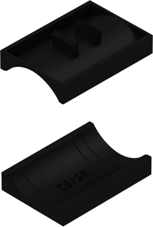 Gegenwanne, mit UV-Schutz, für Hammerfuß-Bügelschelle, selbsthaftend auf C-Profilschienen durch Klemmfeder, halogenfrei. Verwendung für : Hammerfuß-Bügelschelle BA ... und BAK ... C-Profilschienen mit Schlitzweite 11 - 12 mm Abmessungen (ca. Maße) für Kabel-Ø : 30 - 34 mm Länge L : 40 mm Einsatztemperaturbereich : -40° bis 80°C Farbton : schwarz Werkstoff : Polyethylen (PE) silikonfrei (frei von die Lackbenetzung störenden Substanzen)