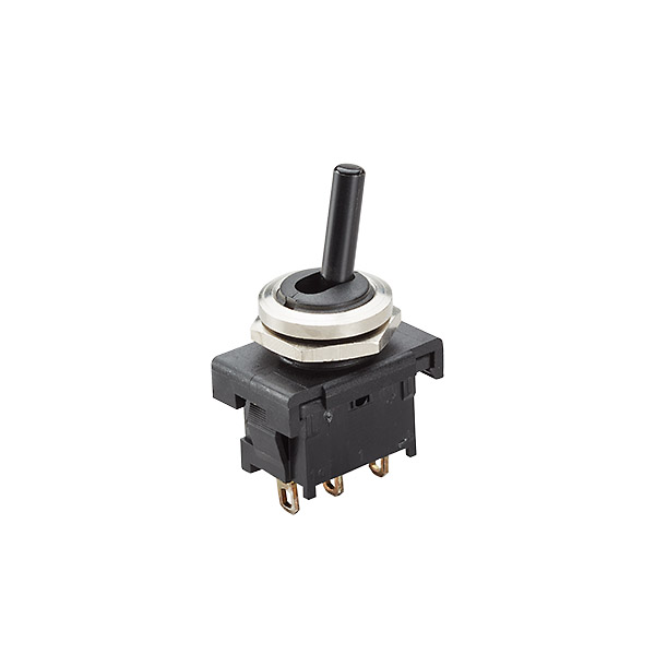 Kippschalter Serie 8400 6(4) A 250V Umschalter, 1polig, Lötanschluss Geeignet für Geräte der Schutzklasse II, Zentralbefestigung M 12x0,75mm, Sechskant- und Rädelmutter aufgeschraubt, Kipphebel und Gehäuse aus Thermoplast, Kontake aus Silber, Anschlüsse versilbert, geeignet zum sek. schalten von Halogenleuchten