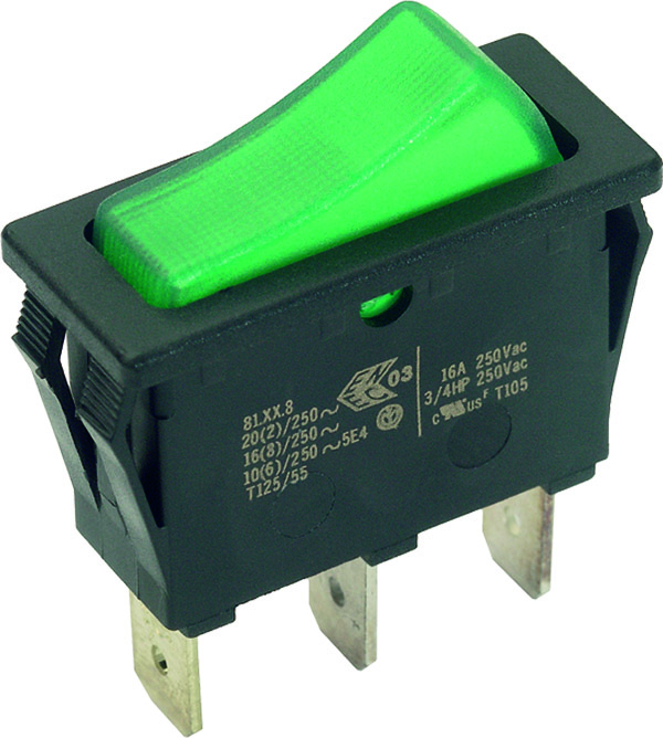 EB-Wippenschalter sw/gn,16(8)A250V 1p. 924.114
