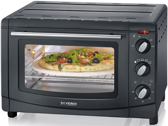 Back- und Toastofen, vielseitig einsetzbar für die Zubereitung von Pizza, Pommes, Braten oder Aufläufen, zum Backen von Kuchen, Aufbacken von Brötchen u.v.m., optimale Ergebnisse: Ober- und Unterhitze sind getrennt oder kombiniert schaltbar, auch für große Pizzen und Kuchenformen mit einem Durchmesser von bis zu 30 cm bestens geeignet, Temperatureinstellungen zwischen 100 und 230 °C, 60 Minuten Timer mit Signalton nach Beenden der vorgewählten Zeit, kurze Aufheizzeit, inkl. herausnehmbarem Krümelblech, inkl. praktischem Entnahmegriff, Innenraumbeleuchtung, 4 verschiedene Einschubebenen, Kontrollleuchte