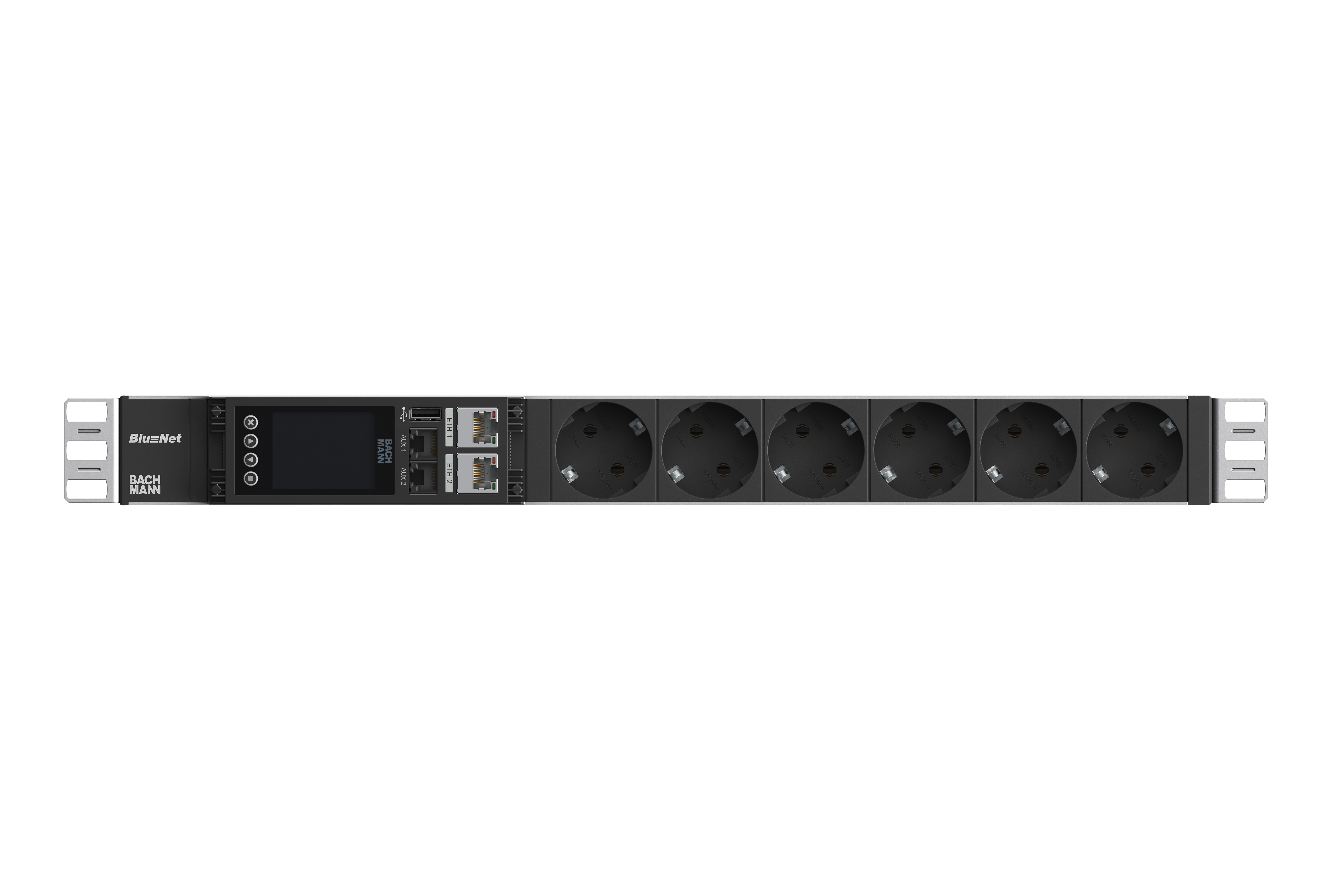 BN ESSENTIAL Metered Messung pro Phase Eingang: 16A/230V | 3,6kW Ausgang: 6xCEE7/3 35° Schutzkontaktsteckdose Zuleitung: 2.0m | 1.5mm² mit CEE7/7 Schutzkontaktwinkelstecker Integrierte Funktion zur Messung von Strom, Spannung, Blind-, Schein-, Wirkleistung, Wirkenergie, Frequenz und Leistungsfaktor Im Betrieb tauschbarer Controller Integrierter Webserver mit Webinterface 2x 1Gbit/s Ethernetanschluss 1x USB-A Anschluss 2x Schnittstelle für Sensoren 2.0" TFT Farbdisplay inkl. Haltewinkel; mit BACHMANN Logo Verpackt im Karton