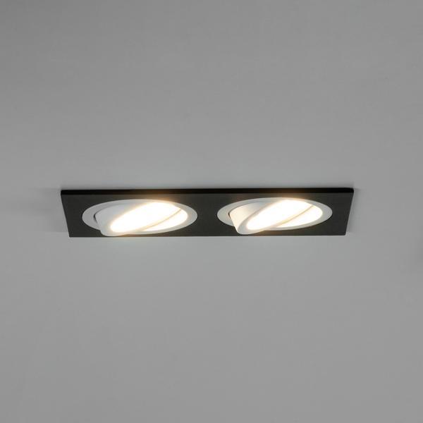 Einbaugehäuse, rechteckig, bündig, 2-fach, mit Modulhalterungen bündig, schwenkbar, ohne LED-Module, außen strukturschwarz / innen strukturweiß , quadratisch. Ausgeführt in kompakter Bauform für werkzeuglose Schnellmontage zum Deckeneinbau. Alle Brumberg MR16-LED-Module sind für die Einbaueinheit M1 bis zur maximal angegebenen Leistung einsetzbar. Die Einbautiefe der Leuchte richtet sich nach den jeweils verwendeten LED-Modulen. Die LED-Module sind im Lieferumfang der Einbaueinheit nicht enthalten. Ausführung: ohne Fassung, Montageart: Einbaumontage, Montageort: Deckenmontage, Material: Aluminium, Schutzart raumseitig: nach DIN EN 60529: IP20, Schutzklasse: (EN 61140) III, Leistung: 13 W, Anzahl der Leuchtmittel / Fassungen: 2 Stück, Verstellbarkeit: schwenkbar, ohne Betriebsgerät, Dimmbar: Abhängig vom Betriebsgerät, Art der Dimmung: Abhängig vom Betriebsgerät.