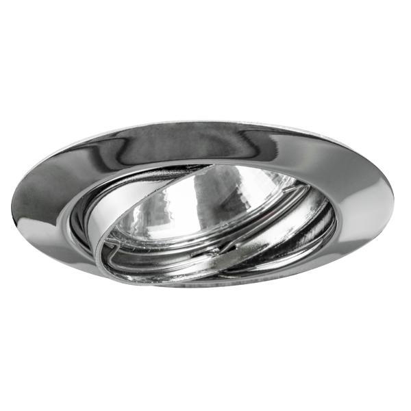 Einbaustrahler, GX5,3, chrom glänzend, rund. Ausgeführt in kompakter Bauform für werkzeuglose Schnellmontage zum Deckeneinbau. Ausführung: GX5,3, Montageart: Einbaumontage, Montageort: Deckenmontage, Material: Stahl, Schutzart raumseitig: nach DIN EN 60529: IP20, Schutzklasse: (EN 61140) III, Spannung: 12 V, Leistung: 13 W, Anzahl der Leuchtmittel / Fassungen: 1 Stück, Verstellbarkeit: schwenkbar, ohne Betriebsgerät, Dimmbar: Abhängig vom Betriebsgerät, Art der Dimmung: Abhängig vom Betriebsgerät.