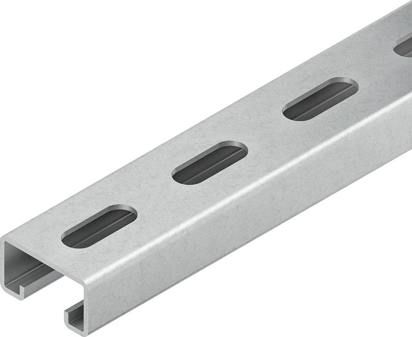 Ankerschiene Modell 2986, C-Profil nach DIN EN 60715, gelocht. Passende Bügelschellen (BU... und BUK...). In persönlichen Gefährdungsbereichen ist die Schutzkappe SKC 86 anzuordnen. Um ein problemloses Aufsetzen der Schutzkappe zu gewährleisten, ist ein Abstand von mind. 30 mm zum Profilende freizuhalten. Zur Verwendung im Funktionserhalt bitte Zusatzvorschriften beachten! Die Befestigung der Ankerschiene mit dem Baugrund, sowie die Befestigungsabstände sind dem jeweils gültigen Prüfzeugnis zu entnehmen. Abmessungen (ca. Maße) Höhe H x Breite B x Materialstärke t : 22 x 40 x 2 mm Schlitzweite : 18 mm Profillochung : 11,5 x 30 mm mittiger Abstand : 50 mm Lieferlänge L : 3000 mm Werkstoff : Stahl, bandverzinkt nach DIN EN 10346