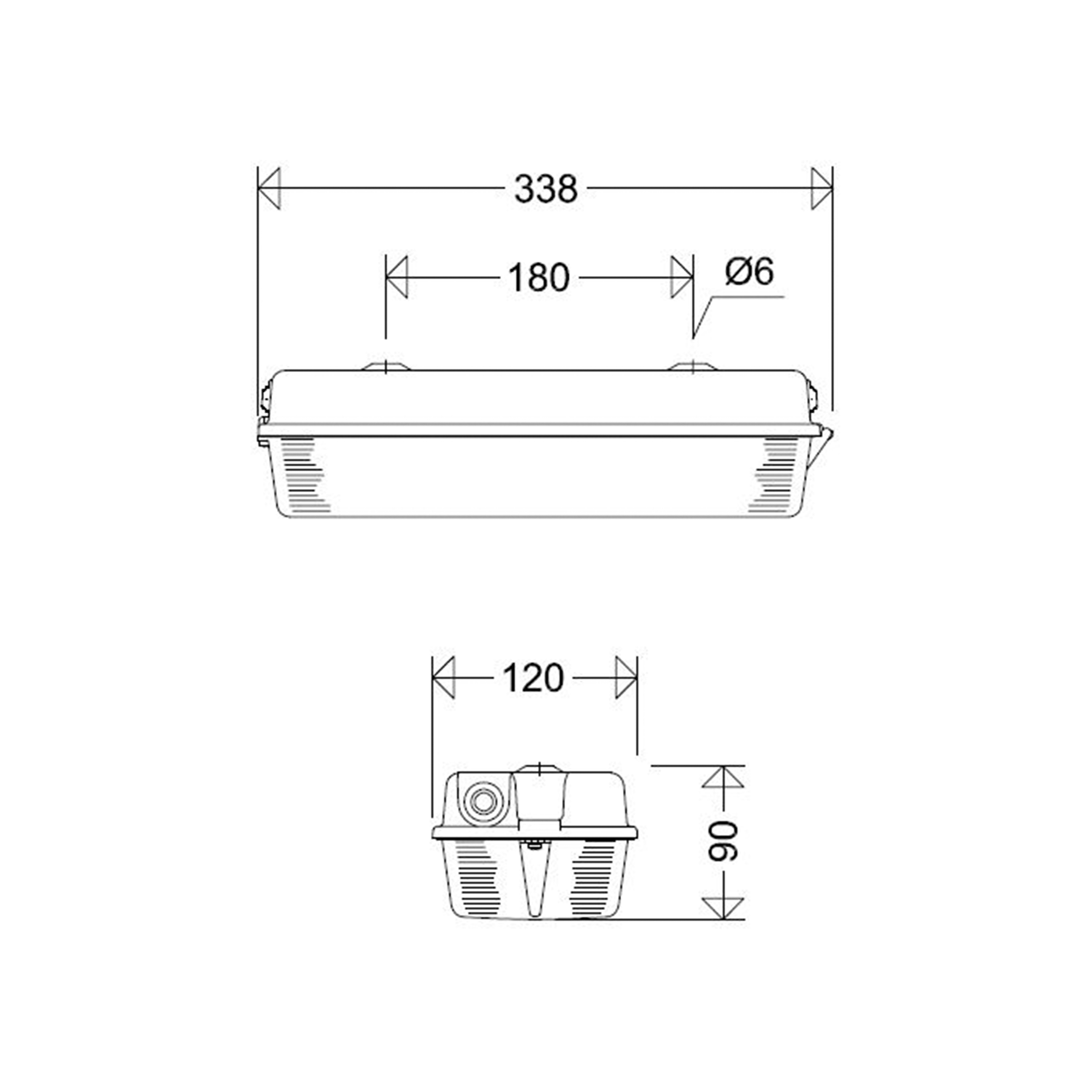LED-Notleuchte, 5 W, 240 lm, Einzelbatterie, Selbsttest, Brenndauer 3 h, SKI, IP65, symmetrisch-breitstrahlend, 6500 K, Ra= 80, Ta 0 °C/+30 °C, L80>50000 h (@ Ta max), Wanne PC opal, Verschluss Edelstahl (1.4301), Gehäuse Kunststoff (PC), Farbe weiß, für Lebensmittelbereiche (IFS), EAN/GTIN:4041254340142.Kleine schlagfeste LED-Notleuchte mit Einzelbatterie und automatischer Selbstüberwachung gemäß EN 62034. PC-Gehäuse, weiß-opale PC-Abschlusswanne, an einer Seite mit Mehrfachscharnier, gegenüberliegend unverlierbare Schraube, Silikondichtung. Lackierter Aluminiumreflektor mit EVG und LED-Modul. NiMH-Batterie mit Tiefentladeschutz und elektronischem Ladesystem, automatischer Funktionsüberwachung und optischer Anzeige der Prüfergebnisse.- Hersteller-Artikelnummer (MPN)
