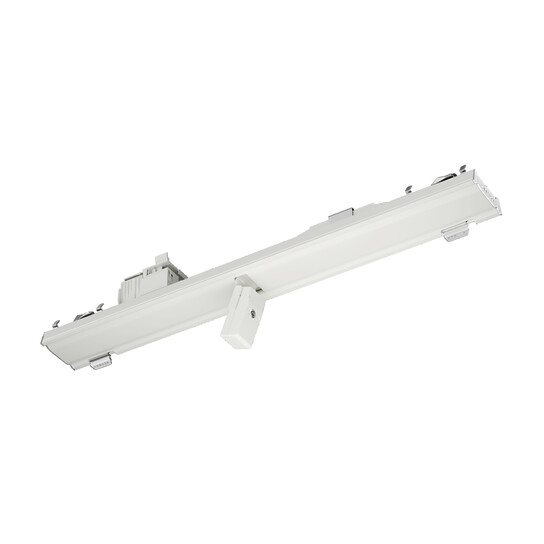 LicrossSensor HE1, Slave, zentrale Steuerung - Anbindung an Licht- oder Gebäudemanagement, lokale Steuerung - autarke standalone Sensorik, dimmbar, Montageart: Einbau, Montageort: an der Licross Tragschiene, aus Stahlblech, Schutzart (gesamt): IP20, Schutzklasse (gesamt): SK I (Schutzerdung), Prüfzeichen: CE, UKCA, Spannung: 230V, Spannungsart: AC, 1 x HF-Bewegungssensor, 1 x Lichtsensor-Eingang, 1 x DALI-2, 1 x Status-LED