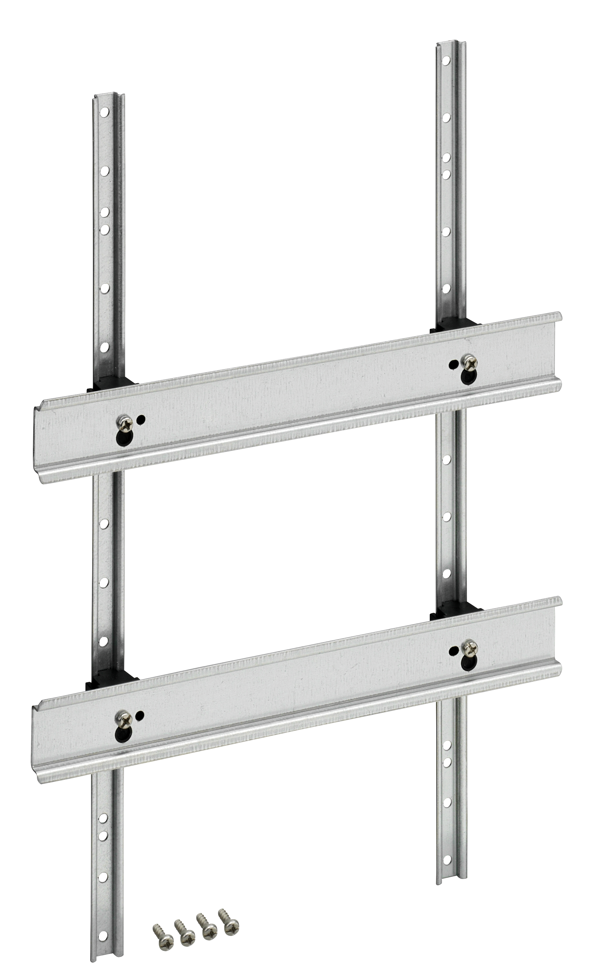 Traggestell mit Normschienen Breite 35mm, in den Höhen 7,5 und 15mm, inkl. Befestigungsschrauben zur Bodenmontage. Optionale Montage mittels Montagehaltern in unterschiedlichen Höhen möglich, ohne Berührungsschutz, 2-reihig, 12 Teilungseinheiten, Normschienen 35 x 7,5mm, zur Montage in GEOS-L/-S 3040Abmessungen: 350 x 366 x 35mm