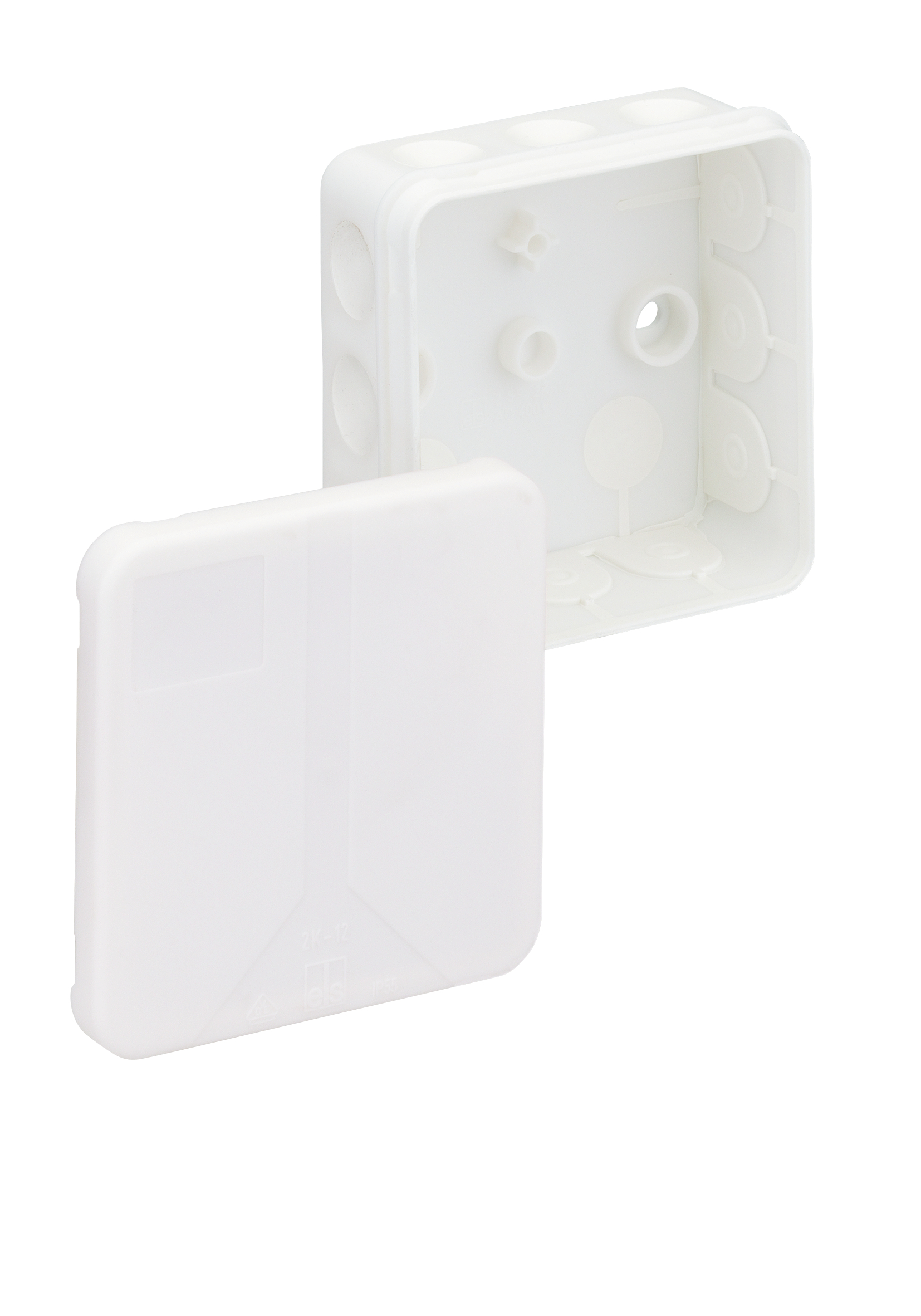 Abzweigdose, mit Schutzart IP55, Nennquerschnitt 2,5mm², Ui=400 V AC, zertifiziert durch VDE (DIN EN 60670-1/-22 (VDE 0606-1/-22)), selbstdichtende, weiche Einführungsmembranen, Dichtbereich 2-14mm, (2 rückseitig, 12 seitlich), innenliegende Befestigungsstellen, für Standardinstallationen im Innenbereich, weiß, ohne KlemmenAbmessungen: 85 x 85 x 37mm