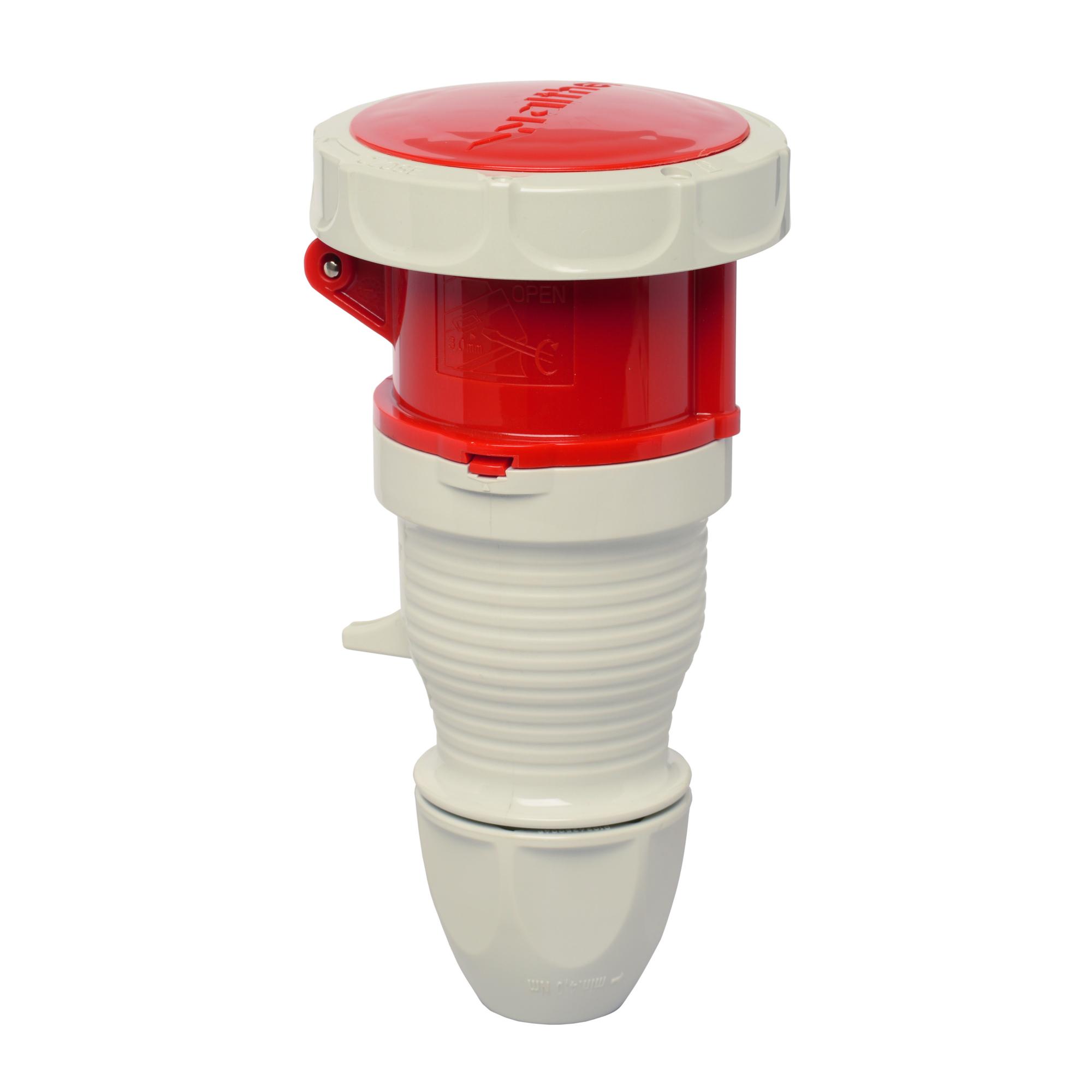 WALTHER Kupplung 16A 5P 400V 6h IP67 aus PA6-Material mit Schraubanschluss und außenliegender Kabelverschraubung Erhöhte Sicherheit durch eingespritzte 2K-Dichtung und 2 Kontaktschrauben.