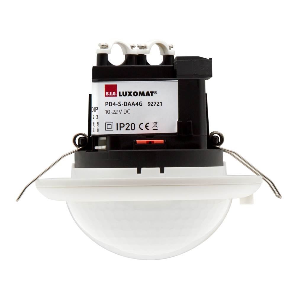 DALI-busbetriebenes Slave-Gerät, Zur Erweiterung des Erfassungsbereiches eines Master-Gerätes PD4-M-DAA4G / PD4-M-HCL, Schaltimpuls zum Master-Gerät bei erkannter Bewegung unabhängig von der Umgebungshelligkeit, Automatischer Test-Betrieb über Master-Gerät, Plug & Play - Keine Parametrierung erforderlich, Einfache Montage, Aufputz- oder Deckeneinbauversion verfügbar
