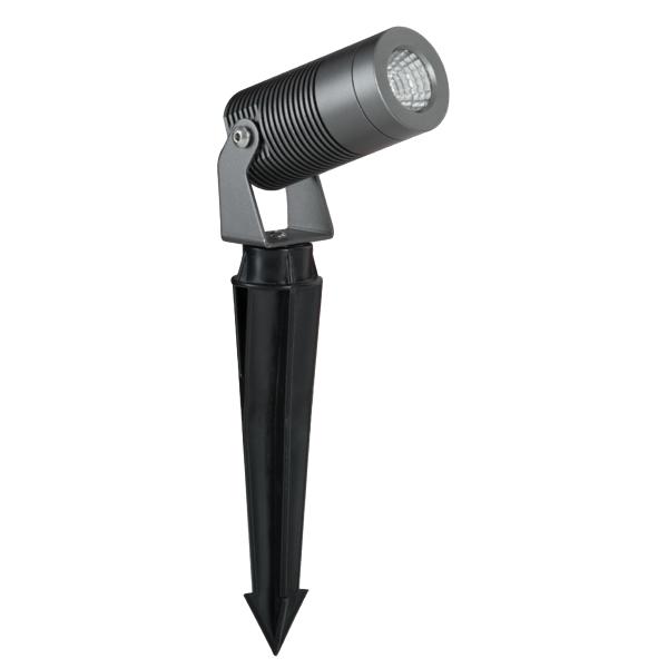 LED-Erdspießstrahler, 24 V DC, IP67, titan matt, rund. Ausführung in kompakter Bauform für die harmonische Implementierung in stimmige, architektonische Raumkonzepte. Ausführung: ohne Fassung, Montageart: Anbaumontage, Montageort: Bodenmontage, Material: Aluminium / Glas, Schutzart raumseitig: nach DIN EN 60529: IP67, Schutzklasse: (EN 61140) III, Spannung: 24V, Leistung: 8 W, Anzahl der Leuchtmittel / Fassungen: 1 Stück, Lichtstrom: 640 lm, Farbtemperatur: 3.000 K, Abstrahlwinkel: 38°, Verstellbarkeit: kopfverstellbar, ohne Betriebsgerät, Art der Dimmung: schaltbar.