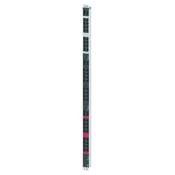 ALU 1HE Steckdosenleiste 24xC13 IEC + 3xC19 IEC Lock Dosen, pro Phase 8xC13 1xC19 auf drei Phasen aufgeteilt, Kennzeichnung 3-Phasen farblich markiert, Strom 3,0m H05VV-F 5G2,5mm² mit CEE 16A Stecker, inkl. Verriegelungslaschen 940.103 mit Haltewinkel, mit BACHMANN Logo verpackt im Karton.