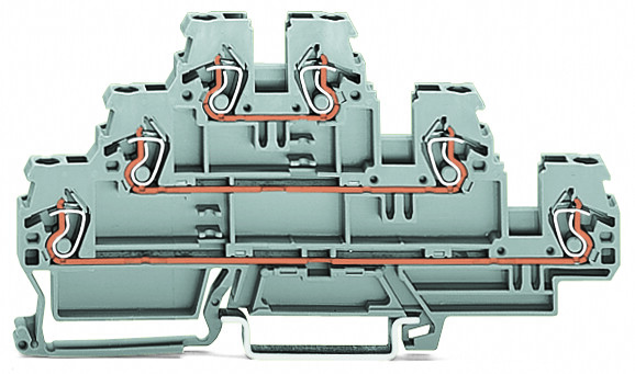 Dreistockklemme; Durchgangs-/Durchgangs-/Durchgangsklemme; L/L/L; für Tragschiene 35 x 15 und 35 x 7,5; 2,5 mm²; CAGE CLAMP®; 2,50 mm²; grauDreistockklemme Serie 870, grau