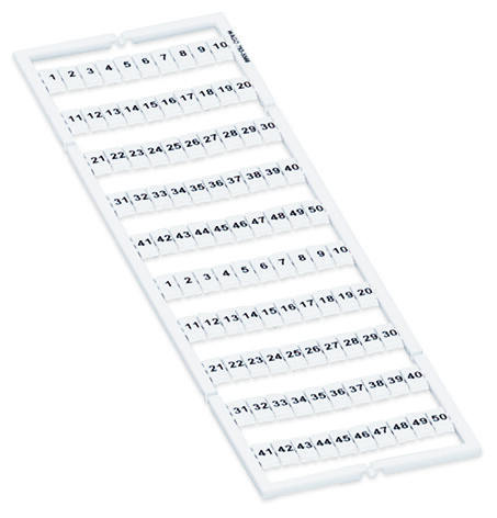 WMB-Beschriftungskarte; als Karte; bedruckt; 1 ... 50 (2x); dehnbar 5 - 5,2 mm; Aufdruck waagerecht; aufrastbar; weiß