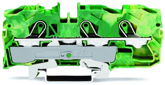 3-Leiter-Schutzleiterklemme; 10 mm²; für Anwendungen Ex e II geeignet; seitliche und mittige Beschriftung; für Tragschiene 35 x 15 und 35 x 7,5; Push-in CAGE CLAMP®; 10,00 mm²; grün-gelbSchutzleiterklemme Serie 2010 mit Betätigungswerkzeug