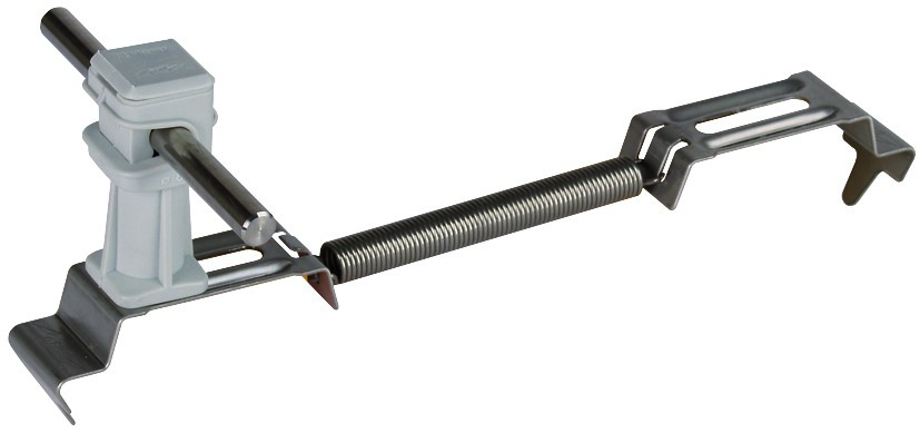 Dachleitungshalter SPANNsnap zum Befestigen von Fangleitungen auf dem Firstziegel z. B. bei Ziegeldächer. Mit Befestigung durch NIRO-Zugfeder mit Leitungshalter DEHNsnap, lose Leitungsführung, seitlich verstellbar. Ausführung aus wetterbeständigem Kunststoff, UV-stabilisiert und halogenfrei.