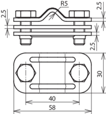 UNI-Trennklemme nach DIN EN 62561-1, zum Verbinden der Ableitung mit der Erdeinführung. Ausführung mit Zwischenplatte für Rund- und Flachleiter.