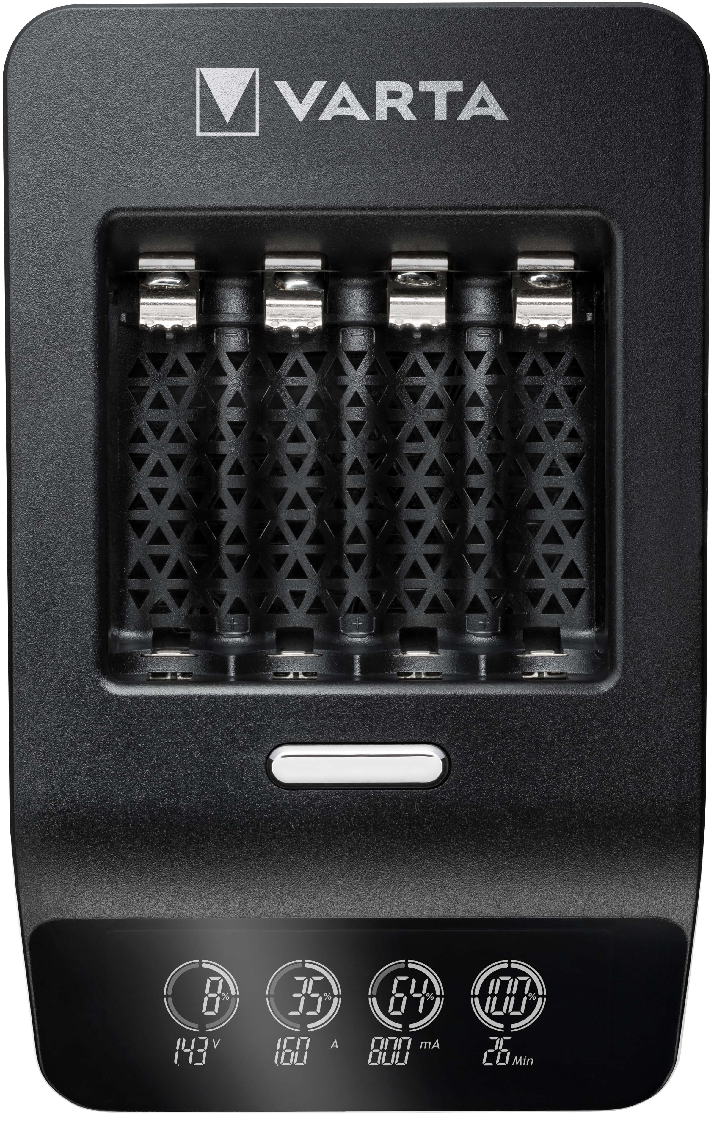 Der VARTA LCD Ultra Fast Charger plus ist mit 4x AA 2100 mAh Akkus, einem 12V-Autoadapter und einem Netzteil ausgestattet. Er kann innerhalb von 15 Minuten bis zu 4 AA/AAA Akkus extrem schnell aufladen (basierend auf 2x AA 1600mAh und durchschnittlich 70 Prozent einer vollen Ladung). Neben den drei verschiedenen Modi: Schnellladen, Laden und Auffrischen verfügt das Ladegerät über eine Einzelschacht- und Erhaltungsladung. Die intuitive LCD-Anzeige, die den Ladevorgang der Akkus, die Spannung (V), den Lade- und Entladestrom (mA) und die verstrichene Zeit (min) anzeigt sowie die automatische Abschaltung vervollständigen den LCD Ultra Fast Charger plus und machen in so zu Ihrem zuverlässigen Ladegerät für alle Ihre Batterien.