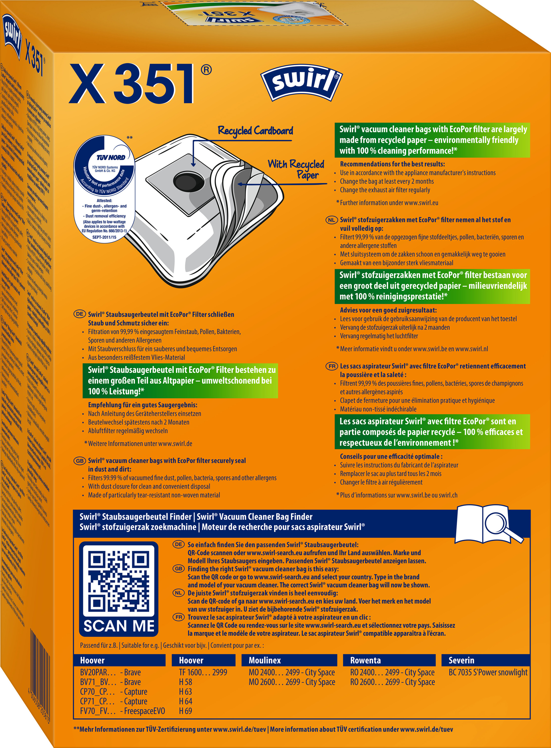 Swirl® MICROPOR® Staubfilterbeutel, MicroPor® Filtration für volle Saugkraft und Filtration durch speziellen mehrlagigen Materialaufbau, aus reißfestem Vliesmaterial, DIRTLOCK Funktion für eine staubfreie Entsorgung des vollen Staubfilterbeutels, Inhalt: 4 Stk., geeignet für Vorwerk-Staubsauger