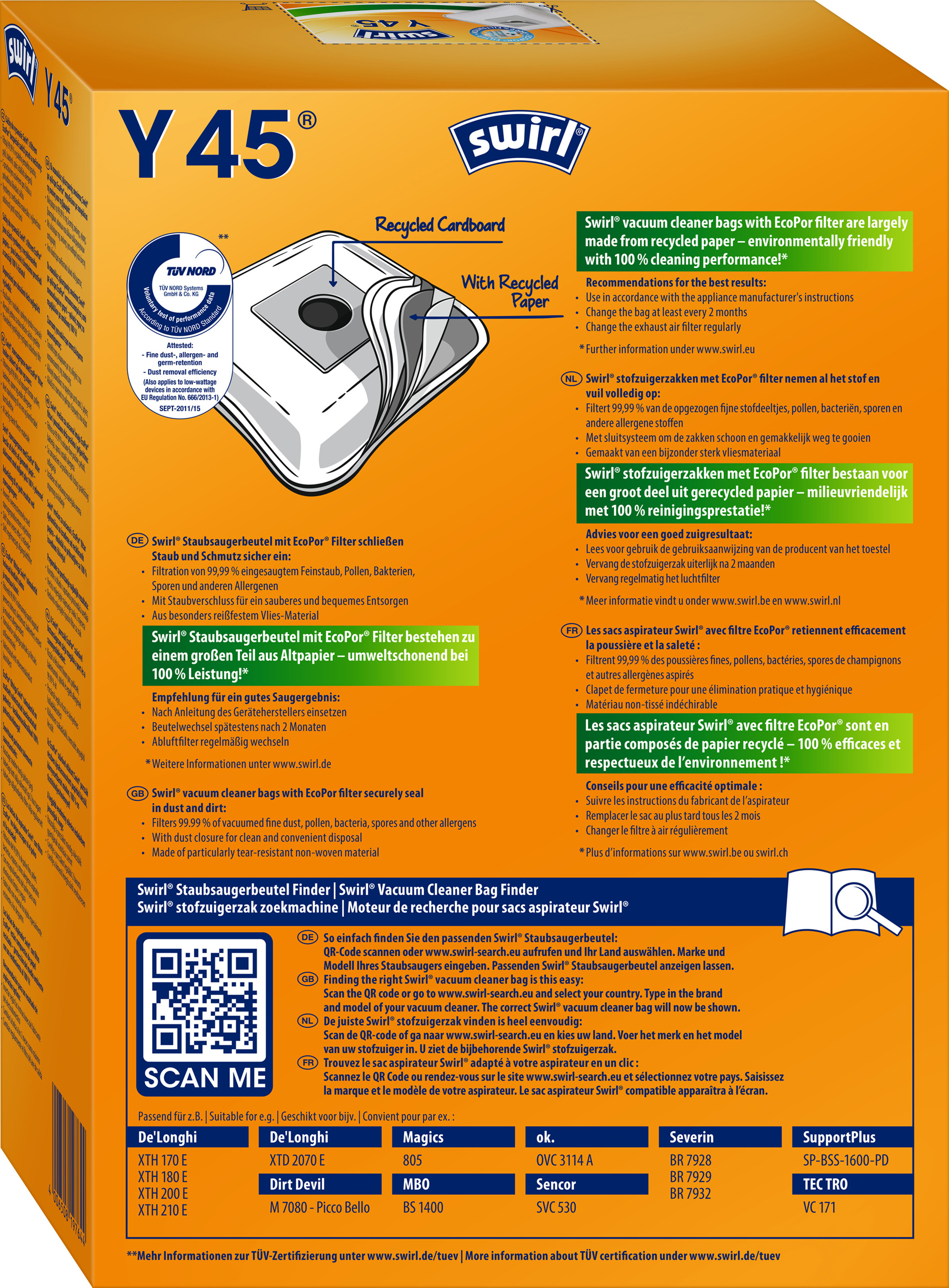 Swirl® MicroPor® Plus Staubsaugerbeutel mit AntiBac System, MicroPor® Plus Filtration mit Anti-Allergen-Filter hält nicht nur normalen Hausstaub, sondern auch allergenen Feinstaub im Beutel fest, das AntiBac System vermindert das Wachstum von Bakterien auf verschiedenen Lagen des Beutels, praktischer Dirtlock® Staubverschluss für eine bequeme, staubfreie Entsorgung des vollen Staubsaugerbeutels, ressourcenschonend durch Einsatz von 40 % Recyclingmaterial und nachwachsenden Rohstoffen, Feinstaub-, Allergen- und Keimfiltration sowie Staubaufnahmevermögen vom TÜV NORD zertifiziert - auch für Niedrigwattgeräte gem. EU Verordnung Nr. 666/2013-I, MicroPor® Plus-Qualität für eine lange Nutzungsdauer, optimale Passform dank abgerundeter Ecken, jede Verpackung mit praktischer Einkaufshilfe, Inhalt: 4 Stk., geeignet für Bodenstaubsauger der Hersteller AFK, Dirt Devil, Severin, etc.